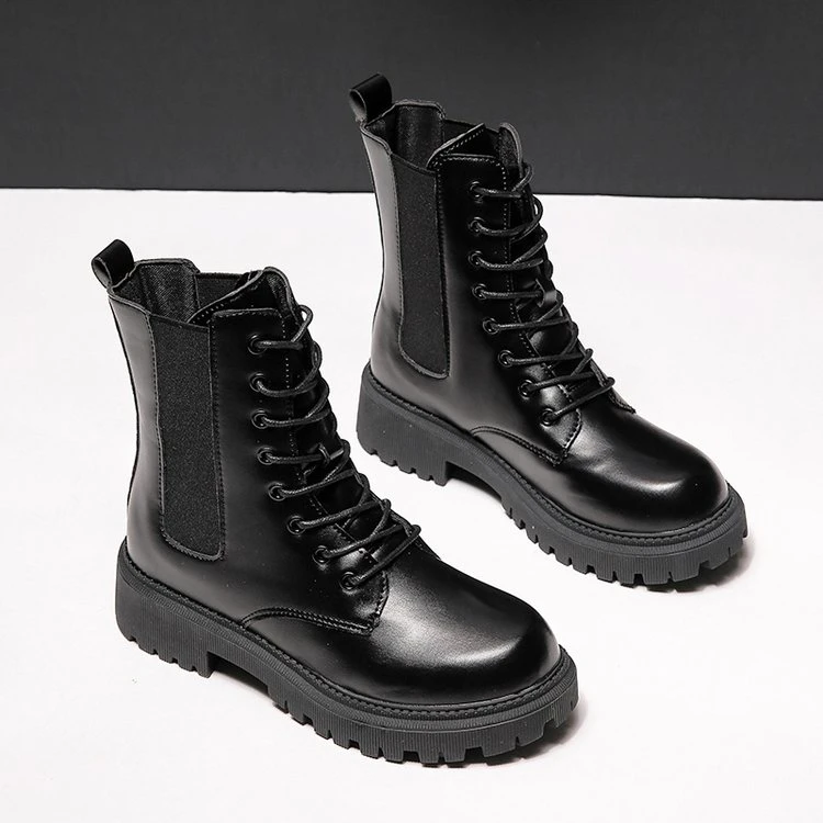Женские ботильоны 2021, модные ботинки из искусственной кожи на молнии с круглым носком, женские повседневные ботинки на платформе в готическом стиле, мотоциклетная обувь в британском стиле