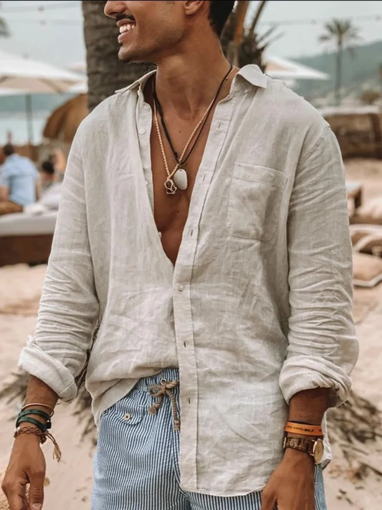 Рубашка мужская повседневная из хлопка и льна, Свободный Топ, футболка с длинным рукавом, красивая, весна-осень-лето