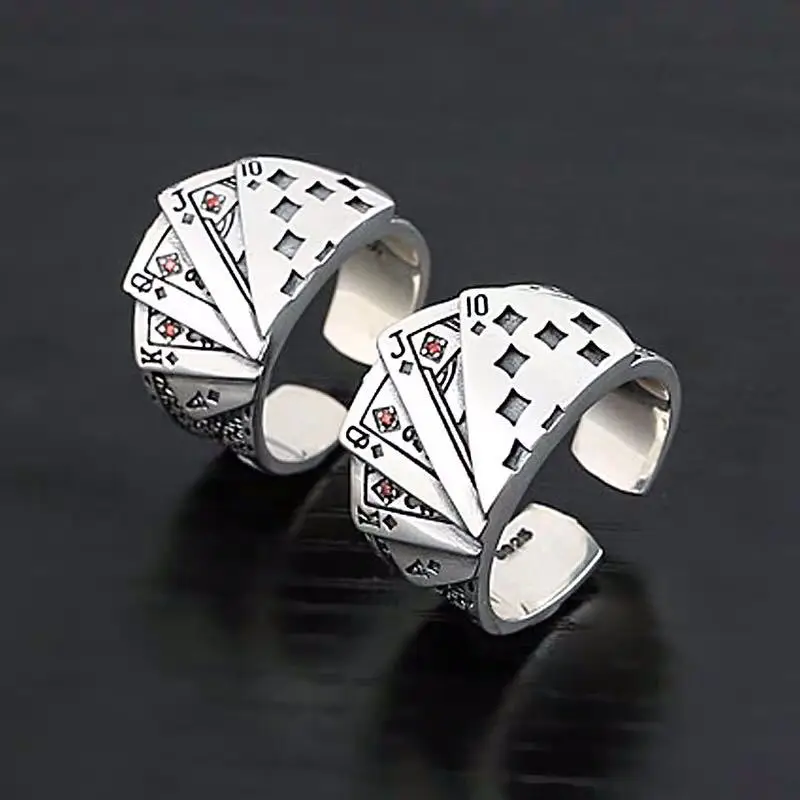 Индивидуальный дизайн, ретро, покер на удачу, прямой флеш, Металлические Открытые Регулируемые кольца для мужчин, Модная бижутерия для вечерние, подарок