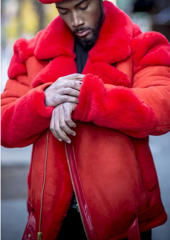 Зимнее Мужское пальто, новинка, искусственная кожа, бархатный мех, встроенный длинный рукав, искусственный мех, Толстая куртка
