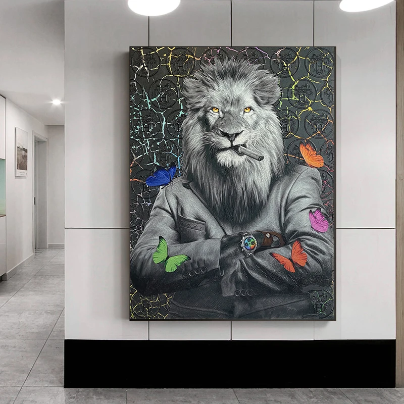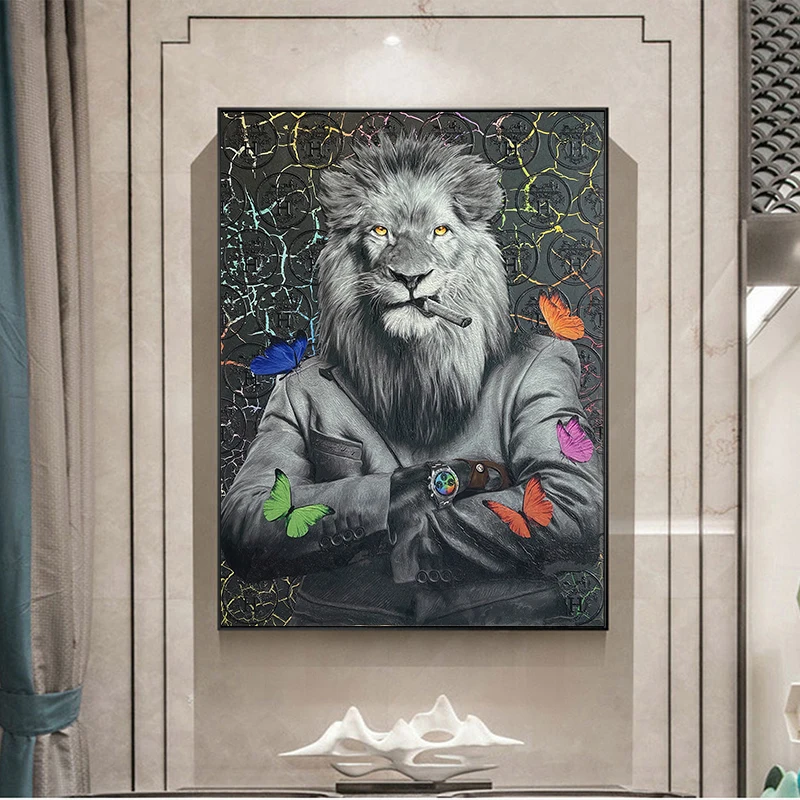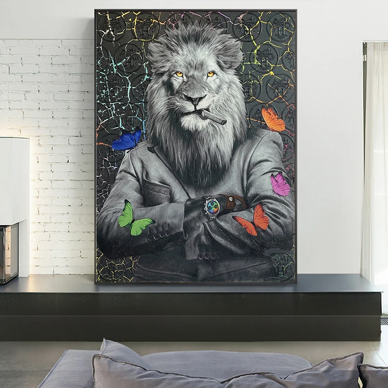 Постер в стиле поп-арт Мистер Лев курительная картина Роскошная Картина на холсте художественный постер печать на стене картина для гостиной домашний декор