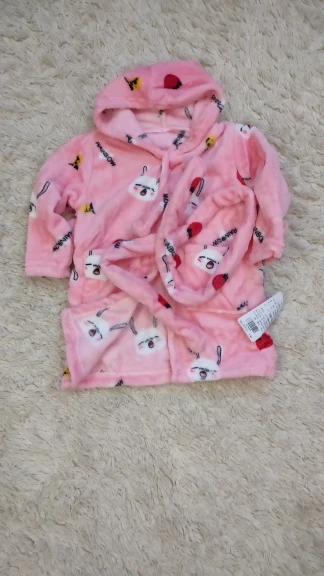 Этот халатик мы выиграли в почти даром,доставили нам его очень быстро. По качеству просто чудесный,нежный плюшевый,симпатичная расцветка. По размеру на 1.10 г. на рост 85 см вес 12.8 размер 3 Т просто отлично сел,но почти без запаса