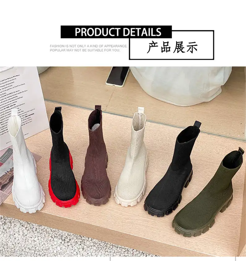 Женские вязаные ботинки-носки на толстой подошве, красные повседнев...