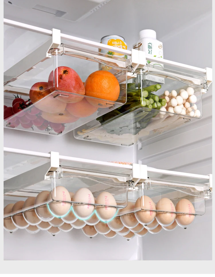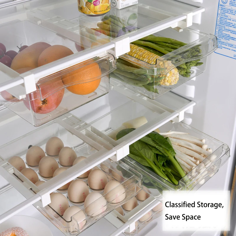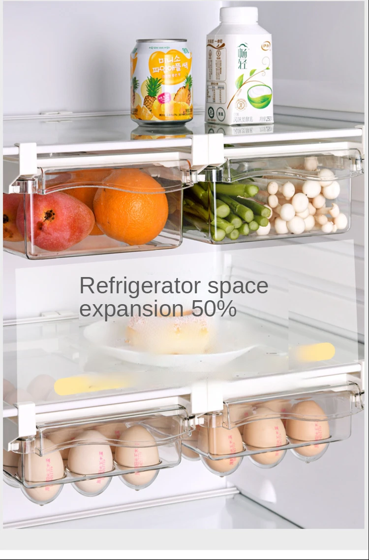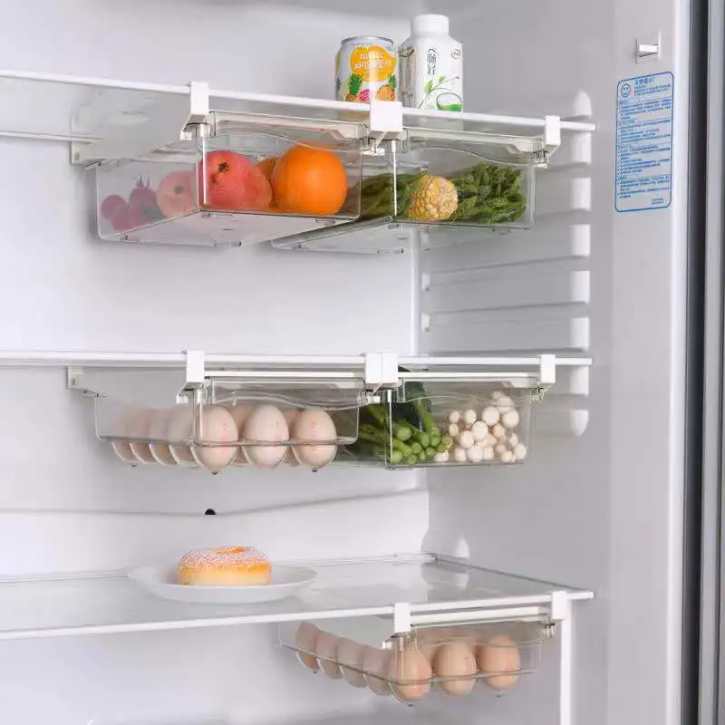 Прозрачный выдвижной ящик для хранения в холодильнике, органайзер для кухонного холодильника, контейнер для овощей и яиц, подвесная полка, стойка, контейнер для хранения