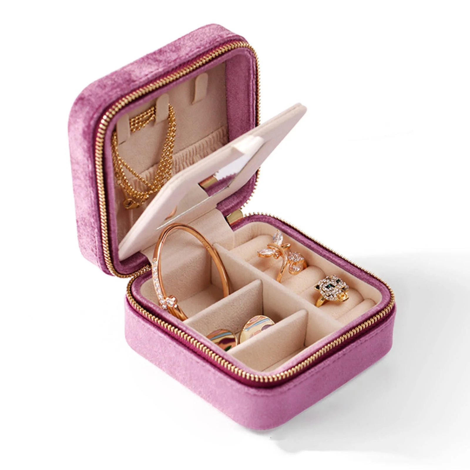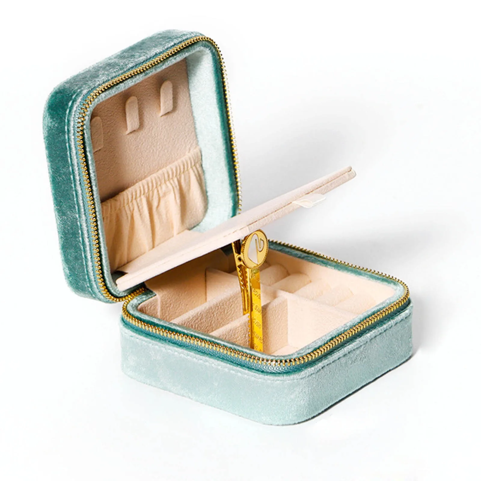 Бархатная квадратная шкатулка для хранения ювелирных изделий, дорожный портативный органайзер для колец, серег, ожерелий, 1 шт.