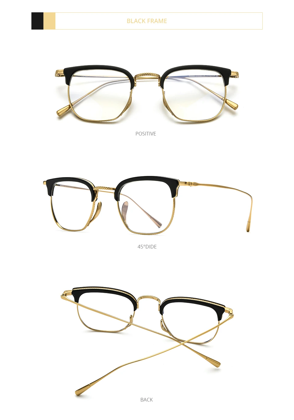 FONEX Оправа для очков из чистого титана, без оправы, в стиле ретро
