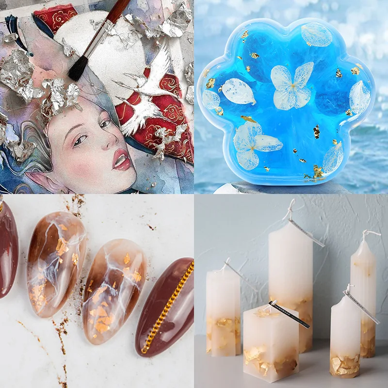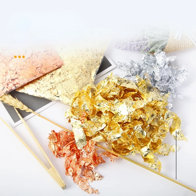 Блестящая золотая фольга 23 г, ювелирные изделия, роскошное украшение из смолы, бумага для рукоделия, хлопья, Серебряные Листья, ногти, красота, позолота, сделай сам, художественное ремесло