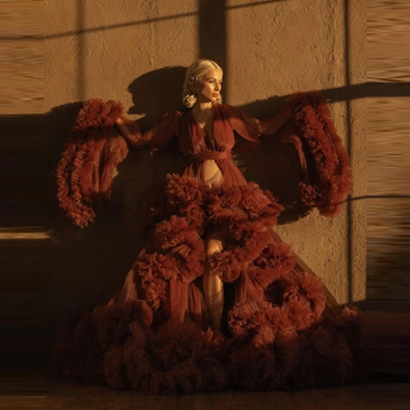 Пышные оборки для беременных фатиновые халаты с V-образным вырезом ...