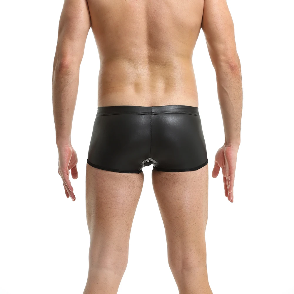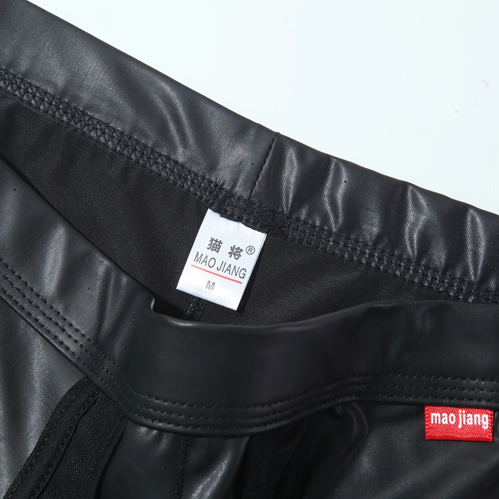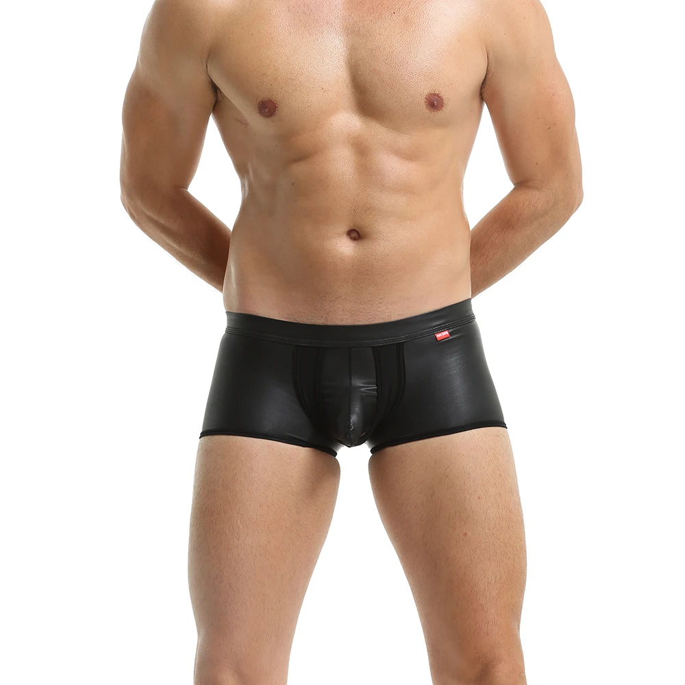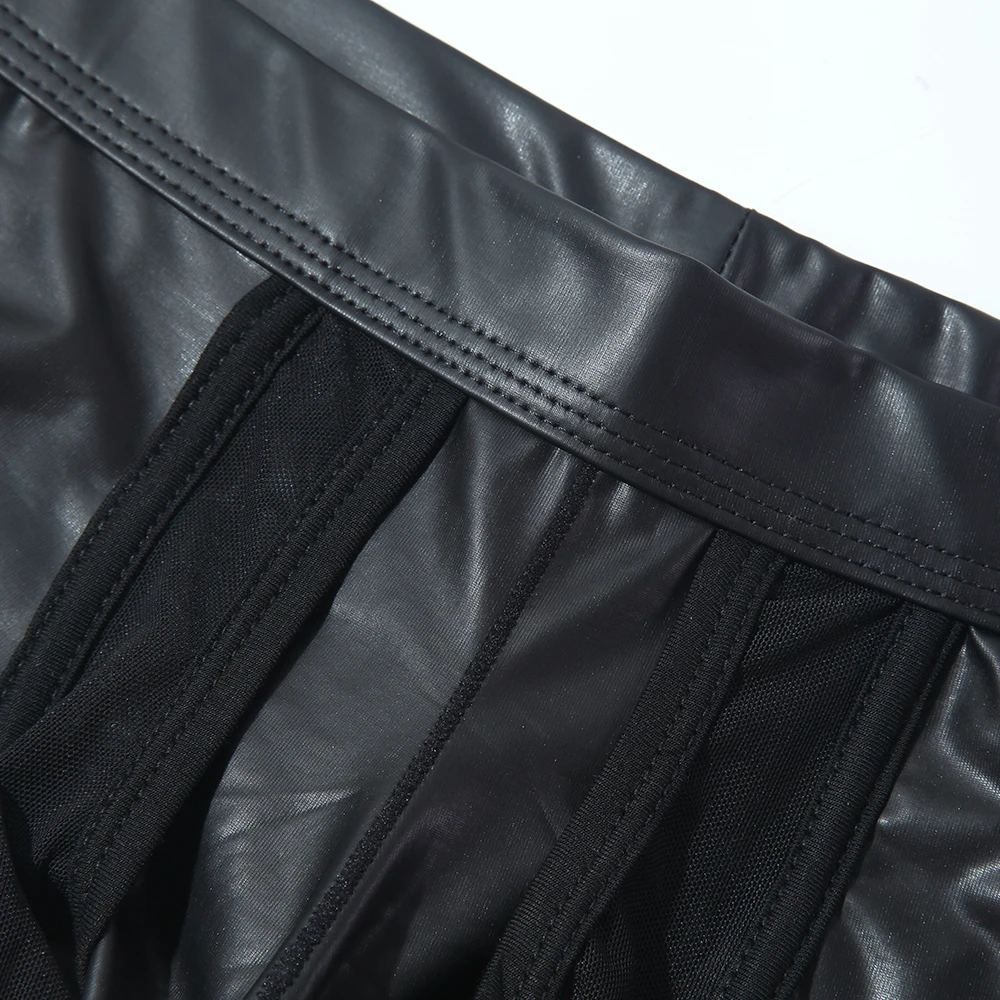 Трусы-боксеры мужские сетчатые, кожаное нижнее белье с мешочком, шорты-боксеры, пикантные трусы