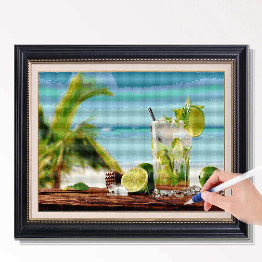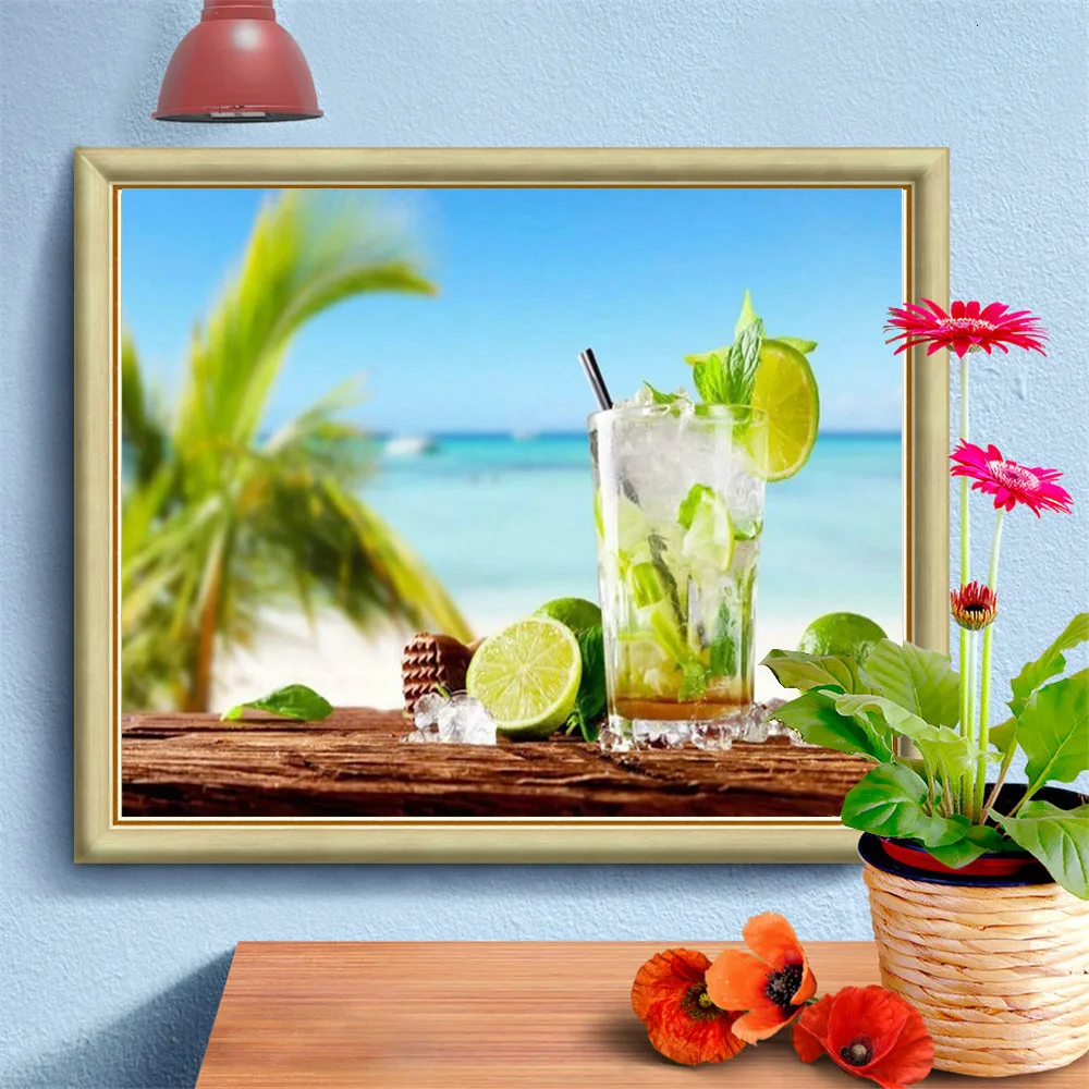 Алмазная вышивка с изображением морского берега, размер холста, бри...