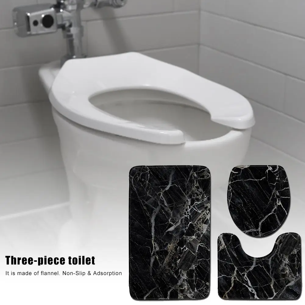 Набор ковриков для ванной с черной мраморной текстурой, 3 предмета, Нескользящие Коврики для ванной комнаты, крышка для унитаза, U-образный контурный ковер, мягкий ковер для ванной комнаты