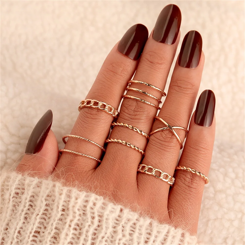 Набор женских колец VKME, 8 шт.компл., толстая Золотая цепочка, гео...