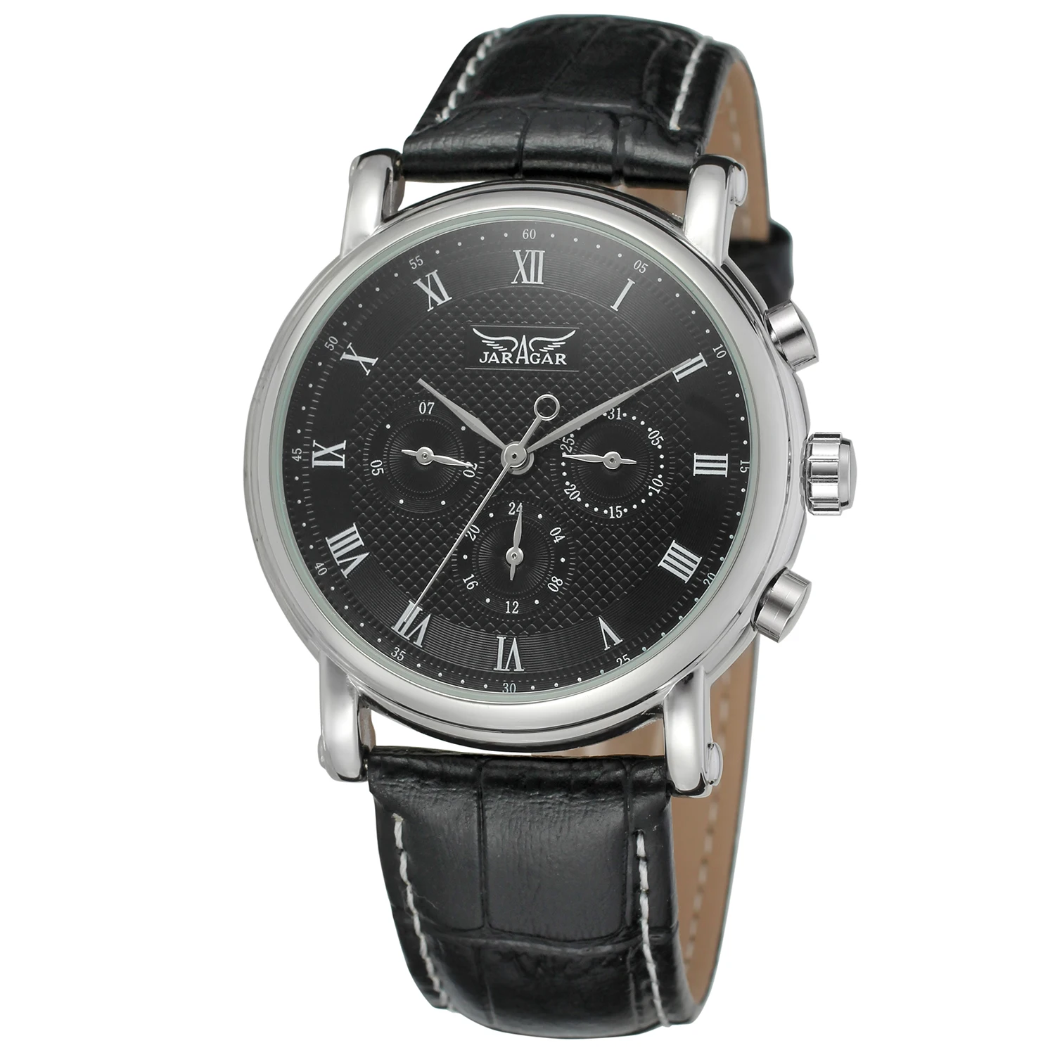 Часы наручные JARAGAR Мужские и женские, модные механические в простом стиле с римскими цифрами, с круглым черным ремешком