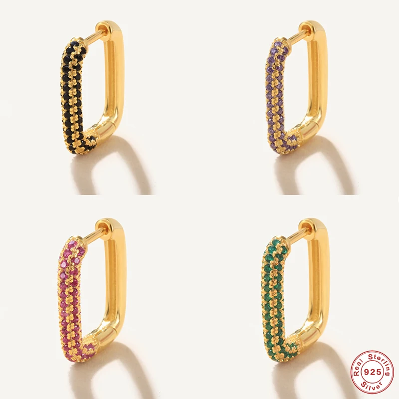 1 шт. 925 стерлингового серебра Красочные Циркон квадратные серьги-...
