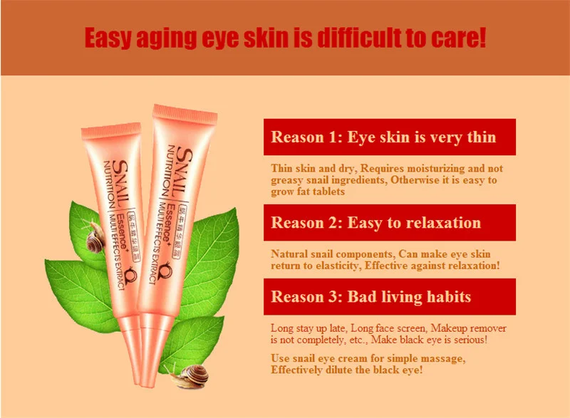 Product advantagesNatural snail ingredients to effectively tighten the eyes