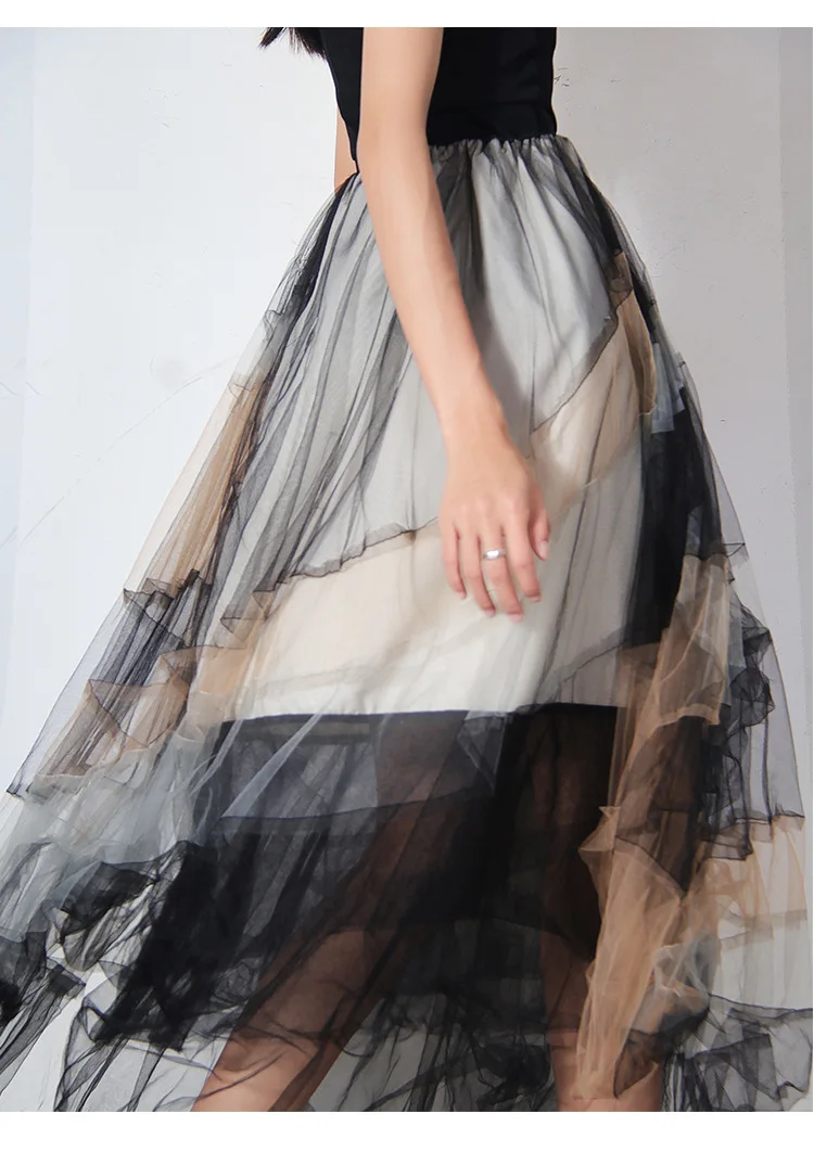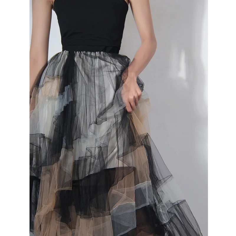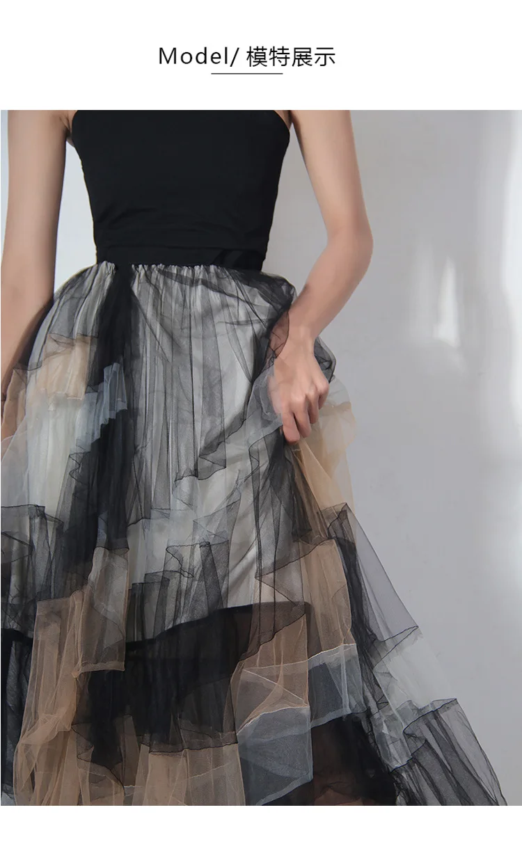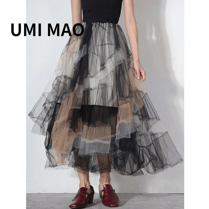 Юбка в сеточку UMI MAO Yamamoto, многослойная юбка из сетчатой ткани с градиентом, летняя юбка нестандартной длины, яркость 2K