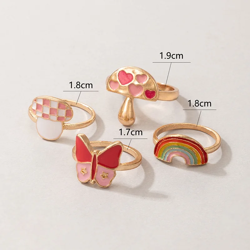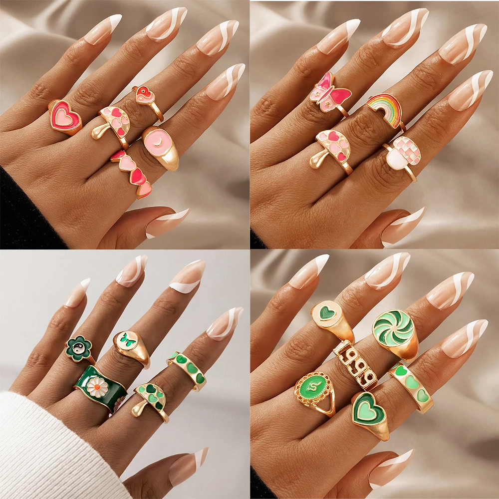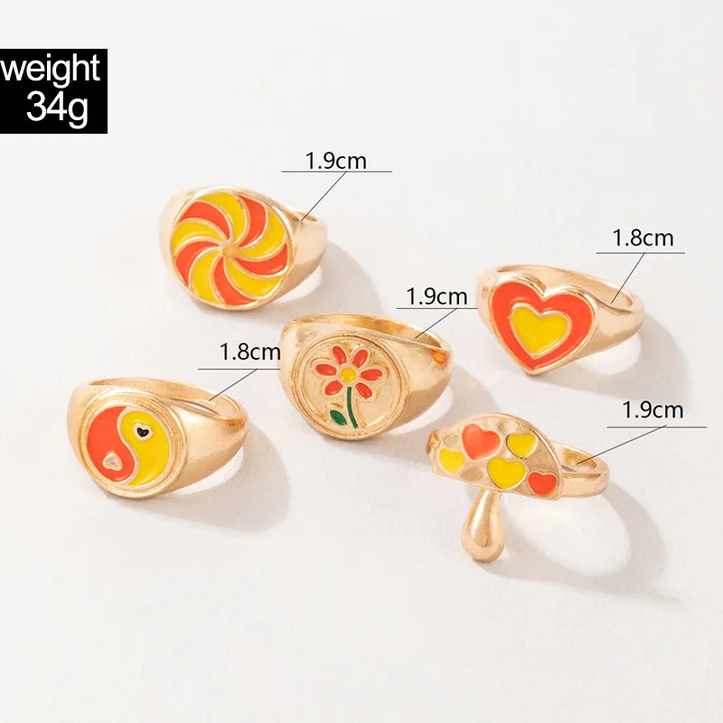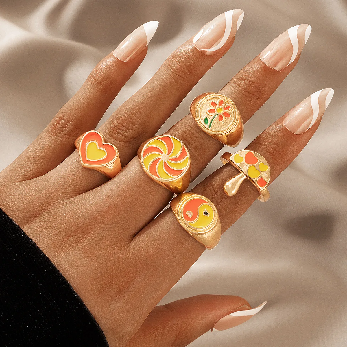 Комплект колец женских винтажных ярких в Корейском стиле, ювелирные украшения для девочек-подростков, кольцо с бусинами в форме сердца, бабочки, Тай Чи, 5 шт., аксессуары
