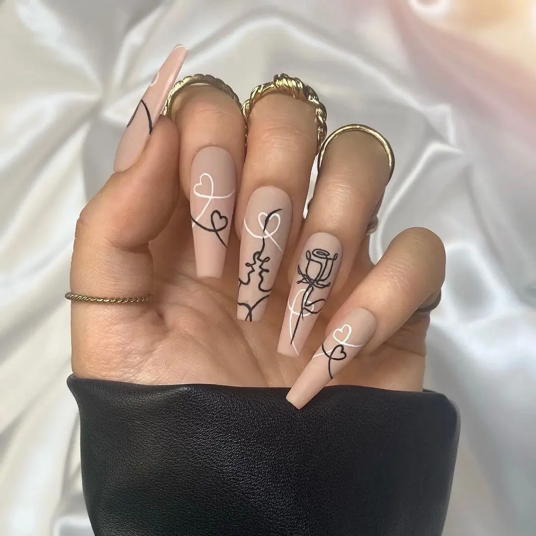 24 шт. длинные гробные накладные ногти французский рисунок сердца Д...