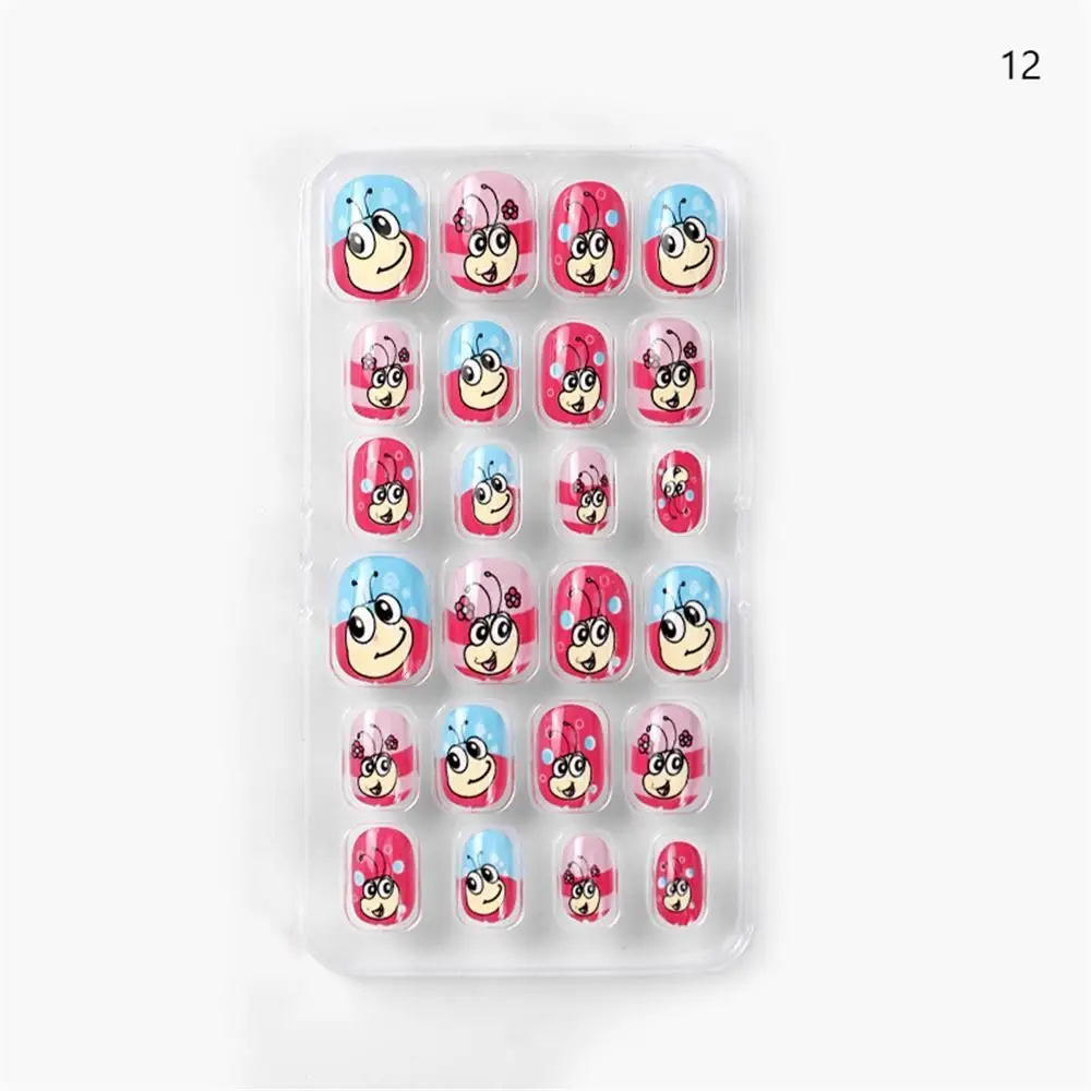 24 шт., детские цветные накладные ногти с мультяшным рисунком, полн...
