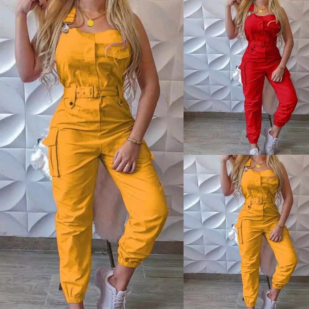 Комбинезон женский однотонный с завышенной талией, комбинезон с карго, без рукавов, с завышенной талией и карманами, Ромпер