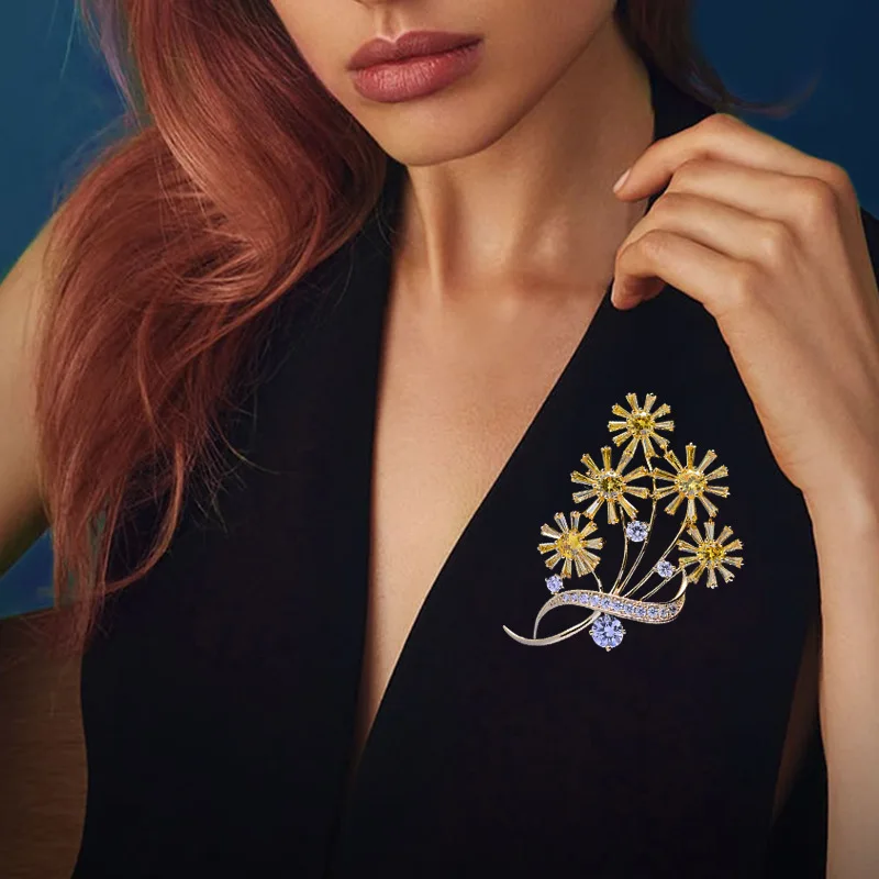 Модная роскошная брошь в форме букета из блестящего золота с цирконием, ювелирные изделия, высококачественные металлические булавки для женщин, аксессуары для пальто и одежды