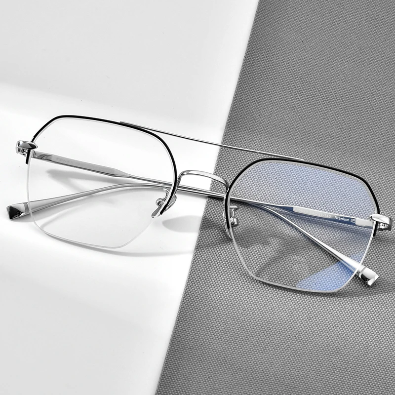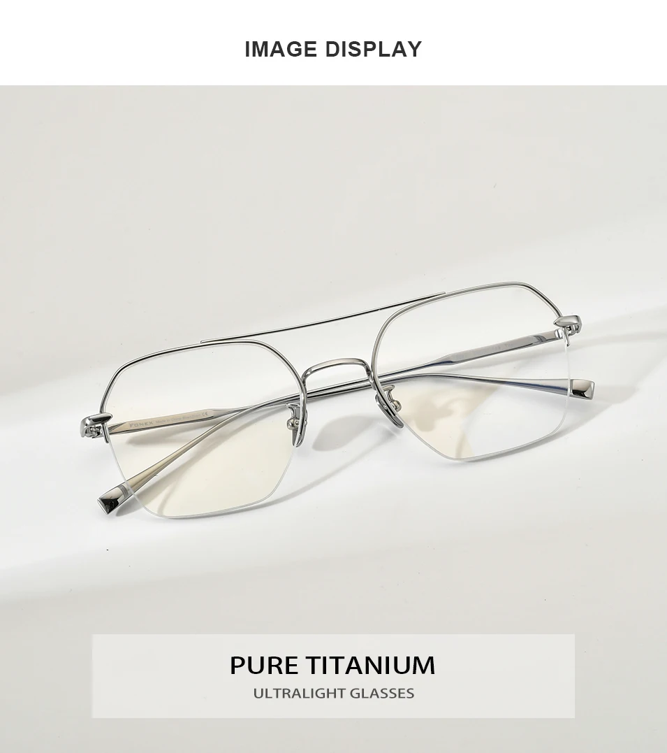 FONEX Оправа для очков квадратная из чистого титана, полуободковая,...