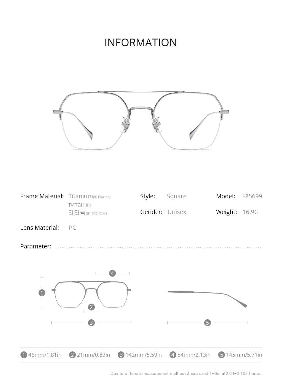 FONEX Оправа для очков МужскаяЖенская квадратная из ацетата и титана