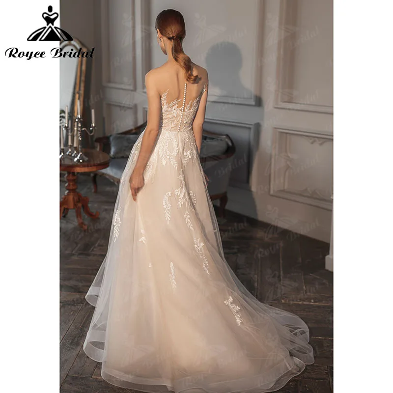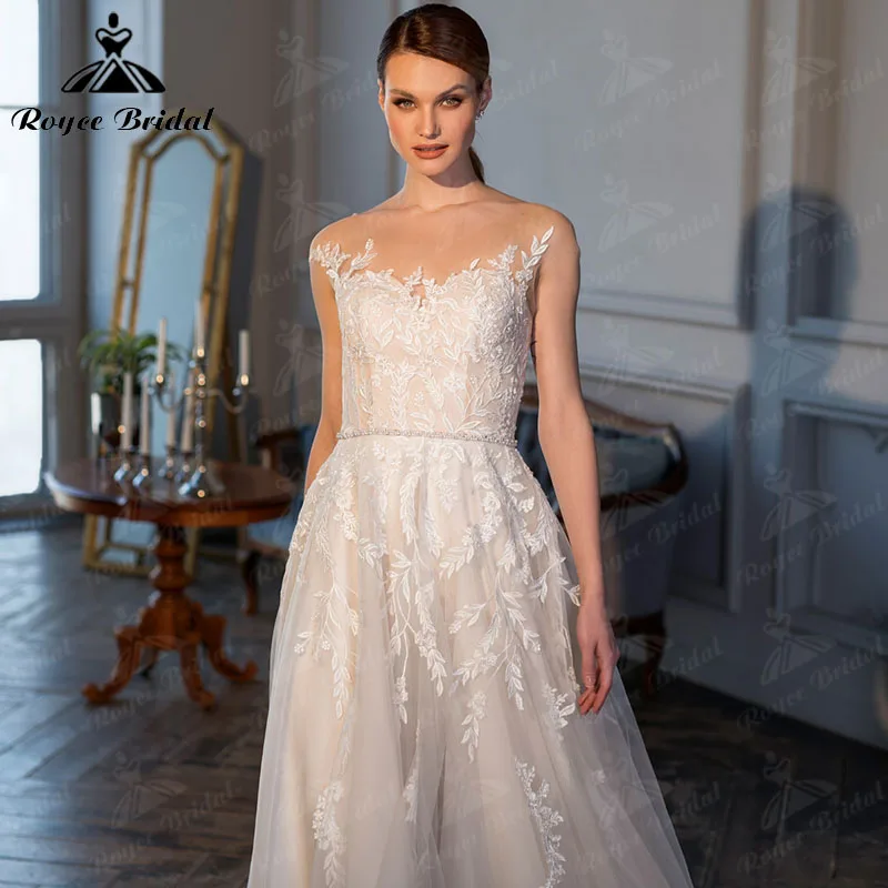 Свадебные платья с рукавом-крылышком, ТРАПЕЦИЕВИДНОЕ кружевное платье с аппликациями, бисером, открытой спиной, иллюзионное свадебное платье, новинка, свадебные платья 2022