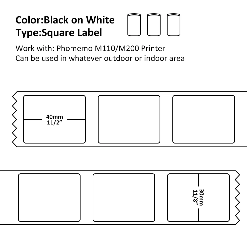 Phomemo M110 M200 принтер этикеток круглый квадратный бумажный стикер многоцелевой клейкая лента самоклеющаяся термобумага черный на белом