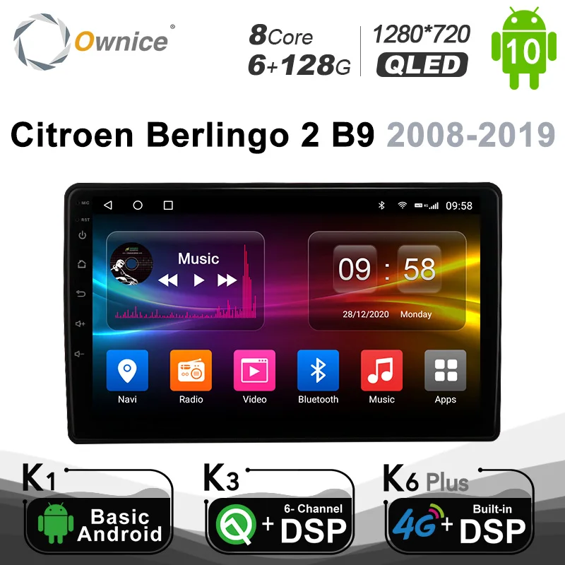 Ownice Авторадио автомобильное радио 2 Din для Citroen Berlingo 2 B9 2008 - 2019 Android 10,0 мультимедиа 4G LTE 6G 128G без DVD