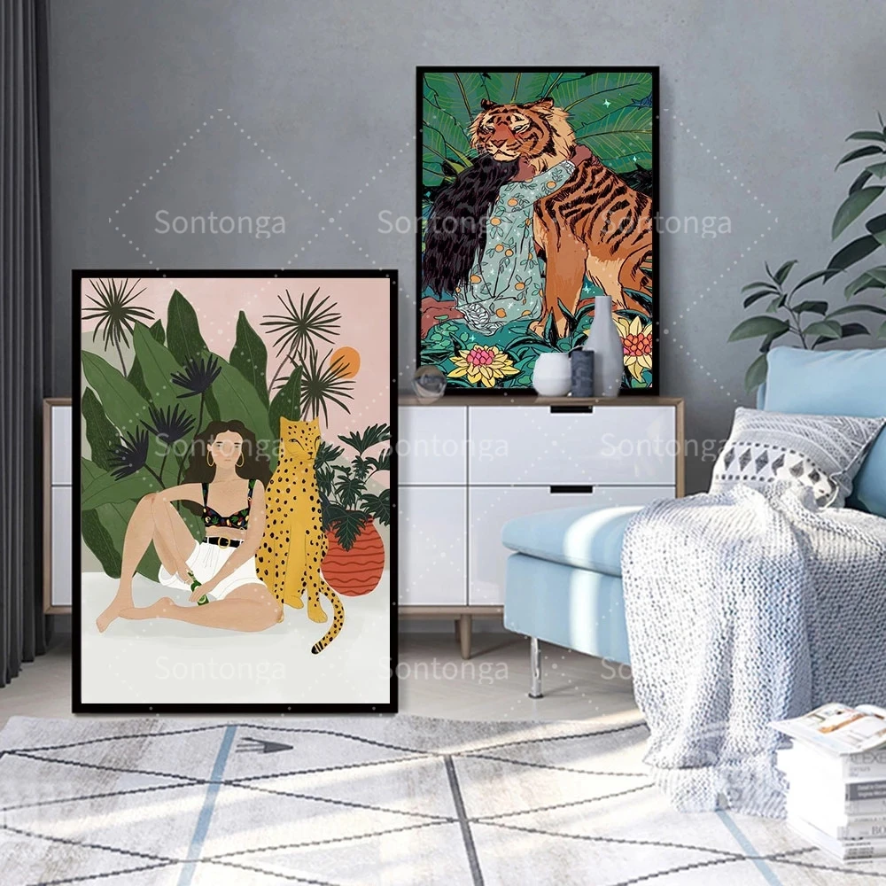 Постер в стиле бохо для девочек, тигр, животное, холст, картина на стену, гепард, скандинавский художественный принт, Современная гостиная, специальные подарки