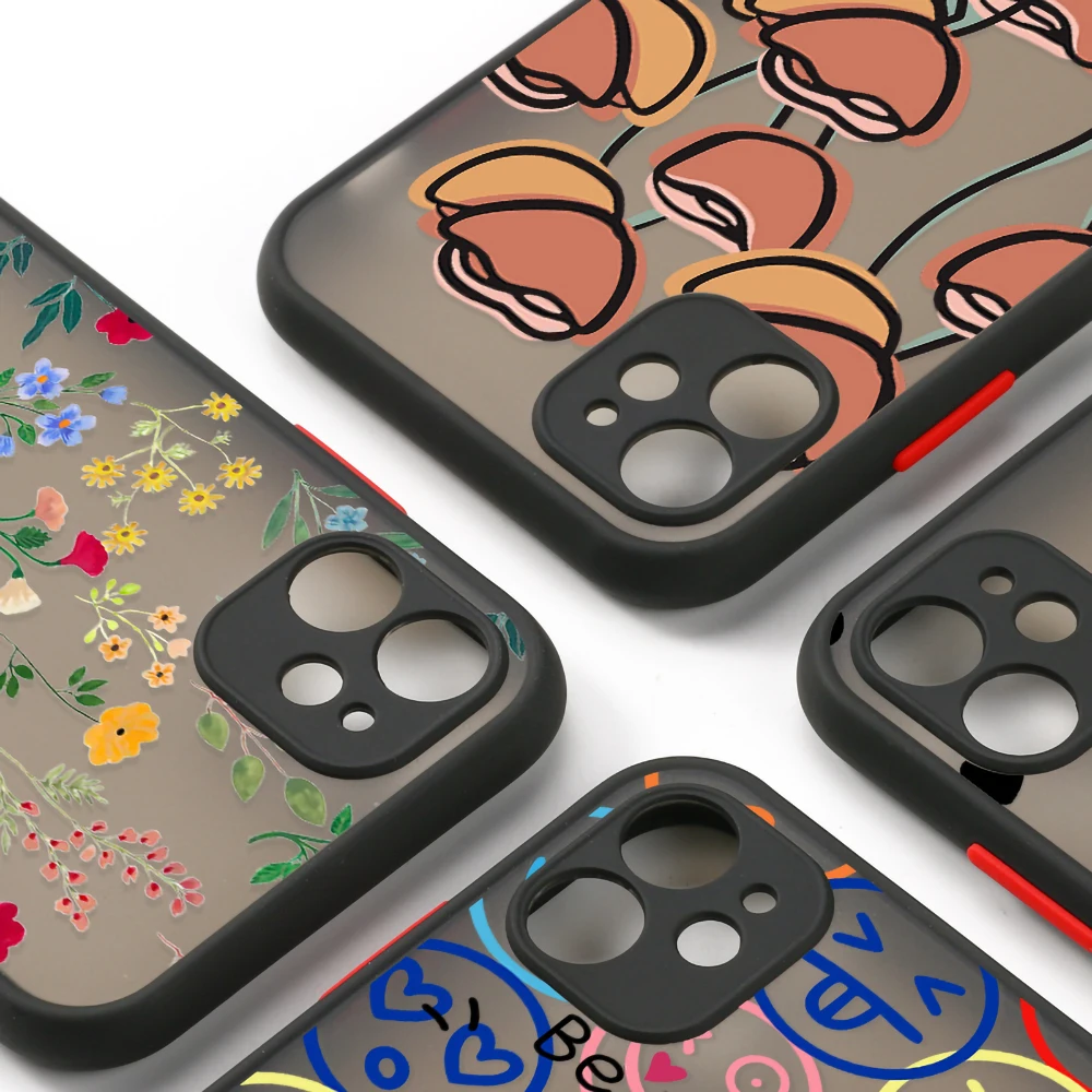 Чехол для Redmi 9 Xiaomi Redmi Note 10 8 Pro 7 10S 9S 9T 9C NFC 9A 8Pro 9Pro Max 10Pro, Жесткий Чехол из поликарбоната с матовым цветком и смайликом, Fundas