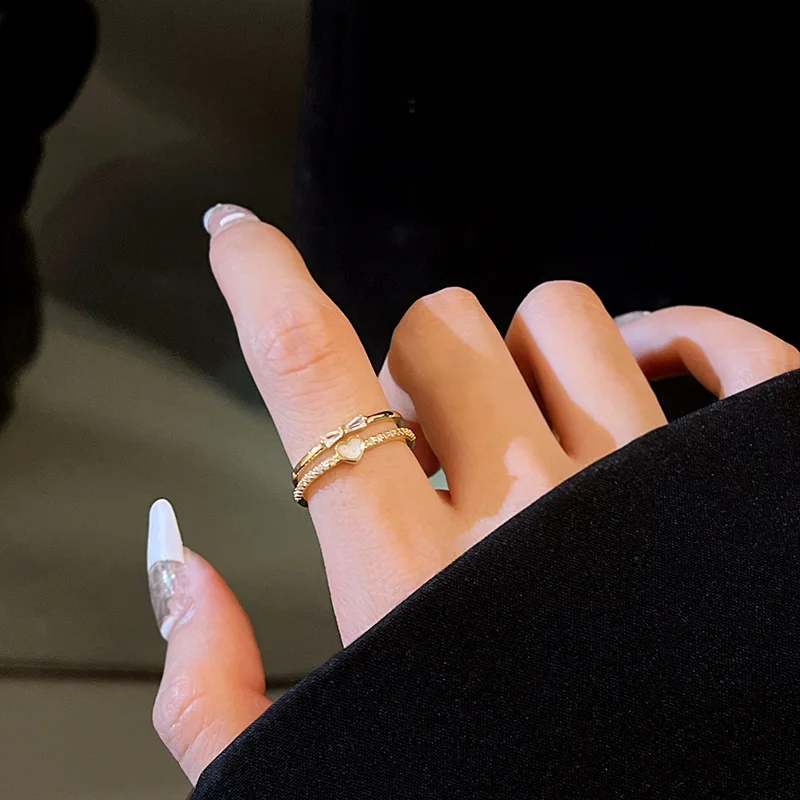 Кольца женские, многослойные, с цирконом, с изменяемым геометрическ...
