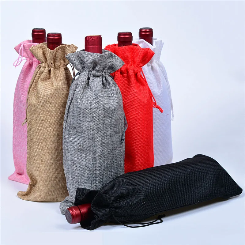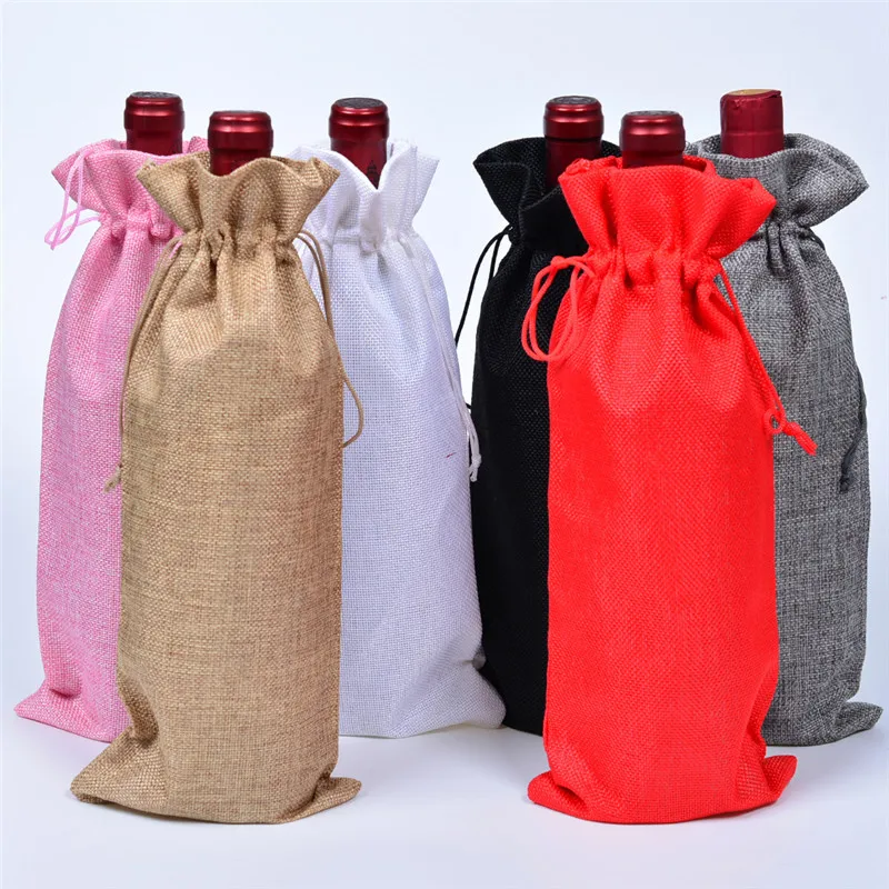 10 шт.лот Чехлы для бутылок красного вина с надписью "Merry Christmas", мешочки для шампанского, милые мешочки для упаковки из мешковины, украшения для новогодвечерние и Рождества