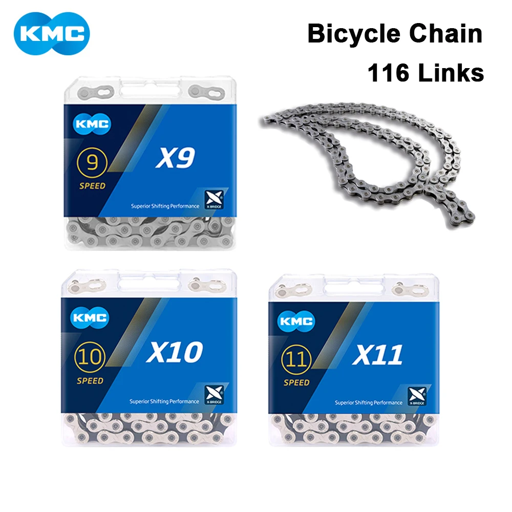 Велосипедная цепь KMC, для горных велосипедов, размеры X9, X10, X11, 116 звеньев, для SRAM 9s, 10s, 11 скоростей, с волшебными кнопками, велосипедные цепи, 9 В, 10 в, 11 в