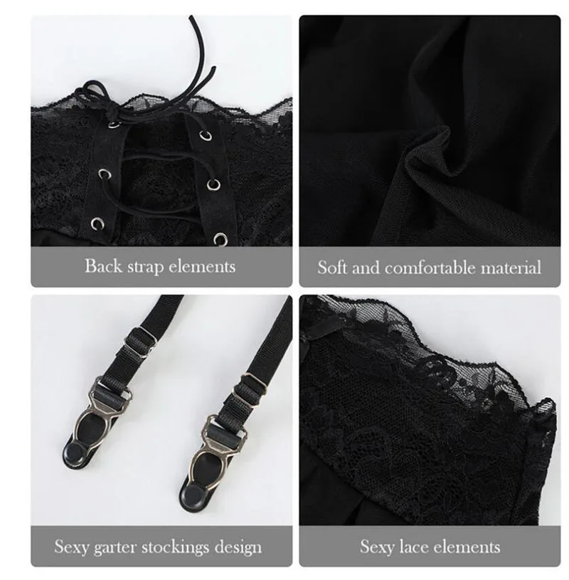 Женское черное нижнее белье с подвязками, кружевная сетчатая юбка с...