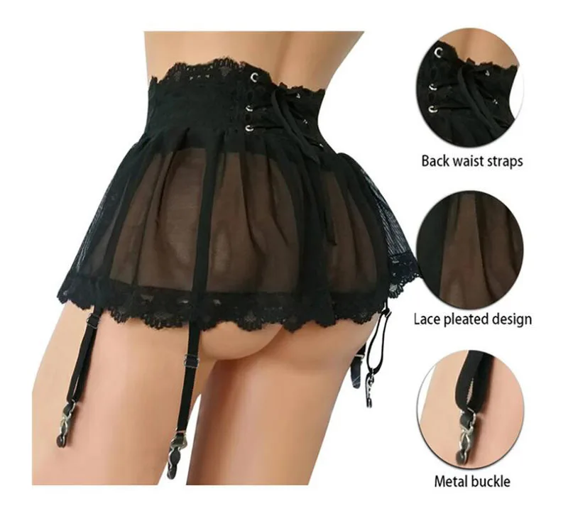 Сексуальное ГОРЯЧЕЕ нижнее белье Jarretels, женское черное нижнее белье с подвязками, подвязки с регулируемым поясом, кружевная сетчатая юбка, Сексуальная Танга