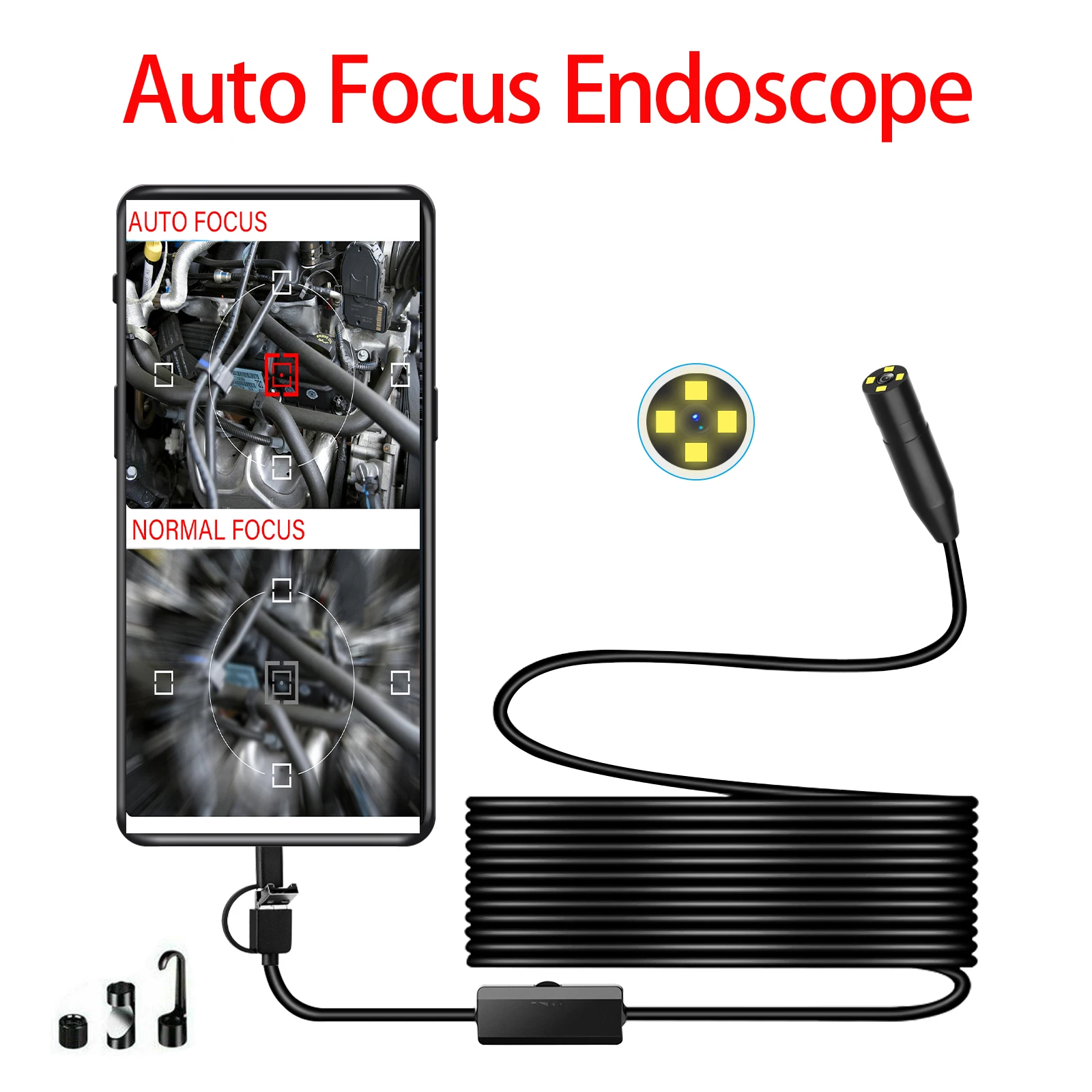 5 МП эндоскоп для автомобилей Android телефонов ПК 3 в 1 Micro USB Type-c 12 мм эндоскопический IP67 Водонепроницаемый Бороскоп Инспекционная камера 10 м