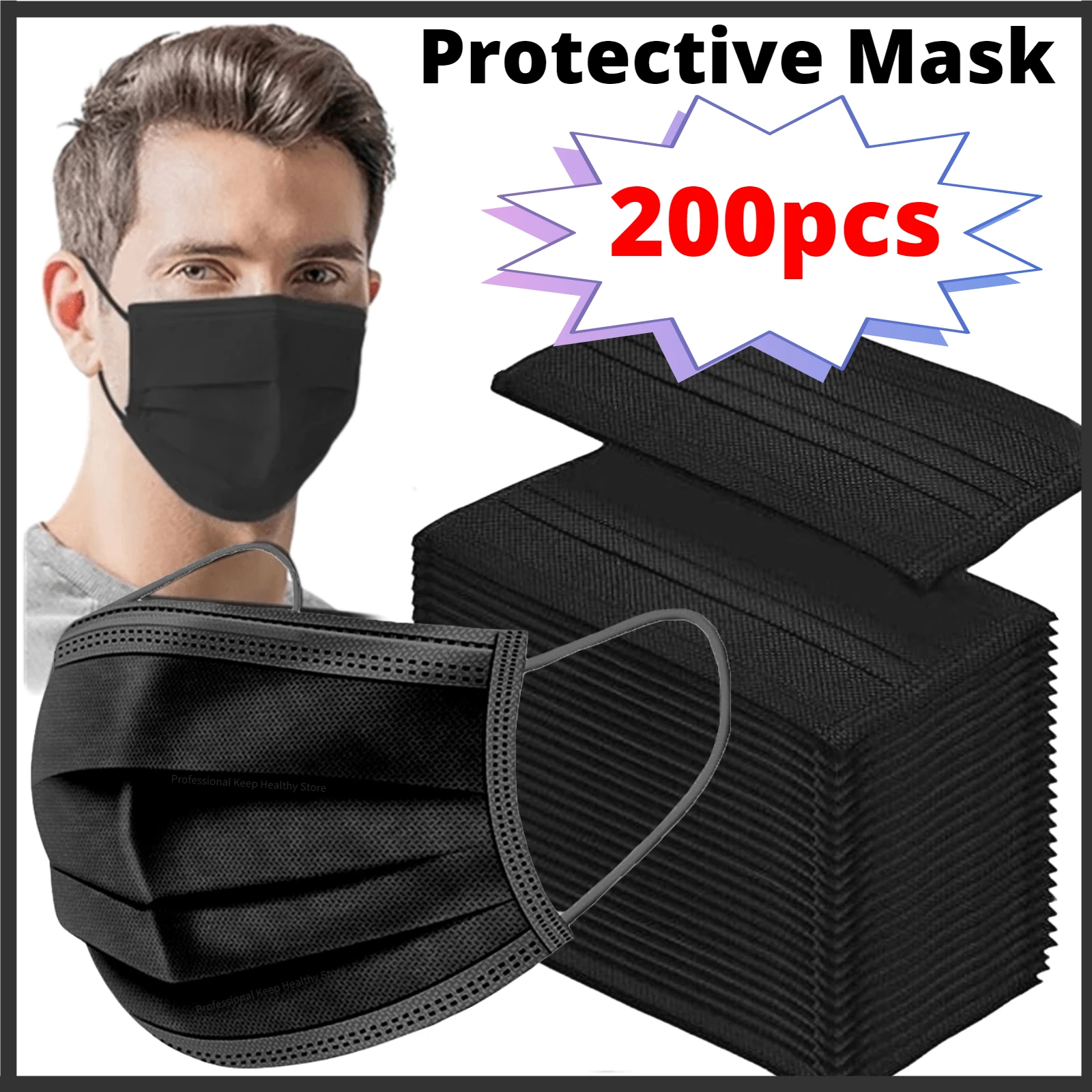 2-200 шт. одноразовые маски черная маска для взрослых из 3 слоев фи...