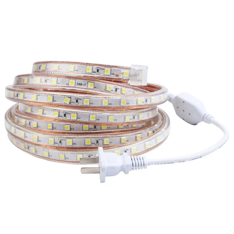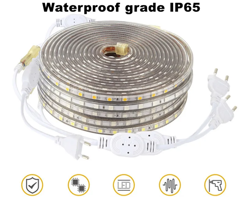 Водонепроницаесветодиодный Светодиодная лента SMD5050, Гибкая sM лампа с разъемом питания, 60 светодиодов, 220 В переменного тока, 1 м2 м3 м5 м6 м8 м9 м 10 м15 м20 м