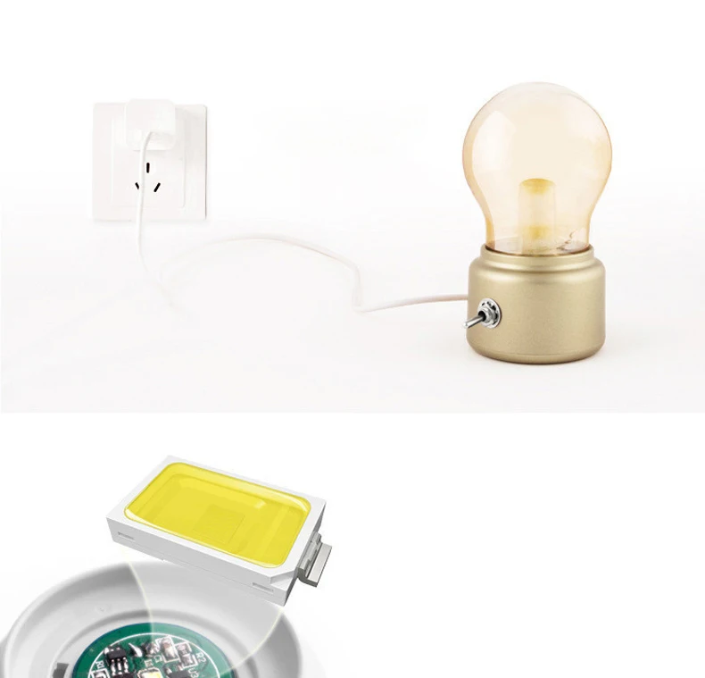 Винтажная светодиодная лампа, Классический светильник для стола, декоративное освещение в стиле ретро, ночсветильник с USB-зарядкой и аккумулятором, портативная лампа рядом
