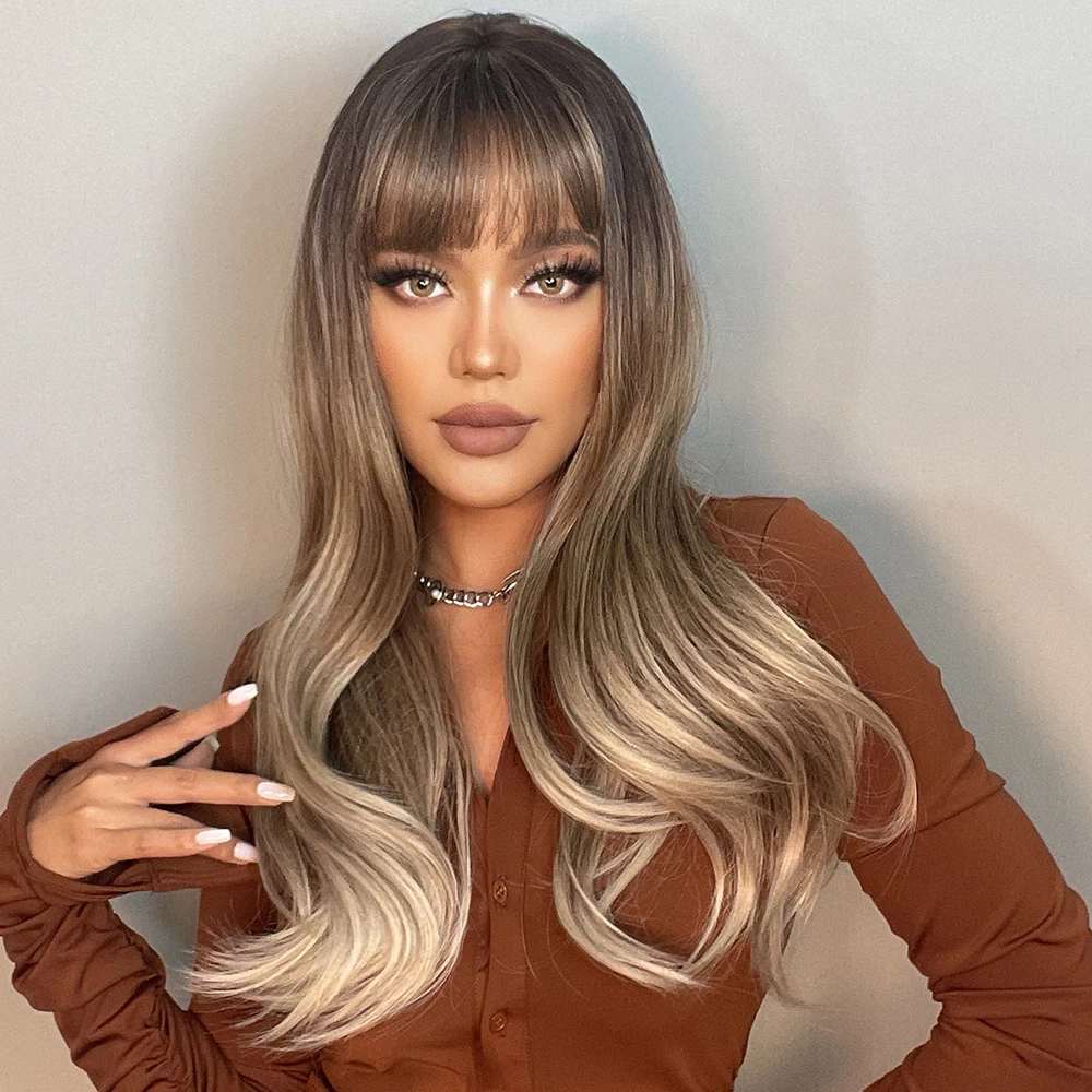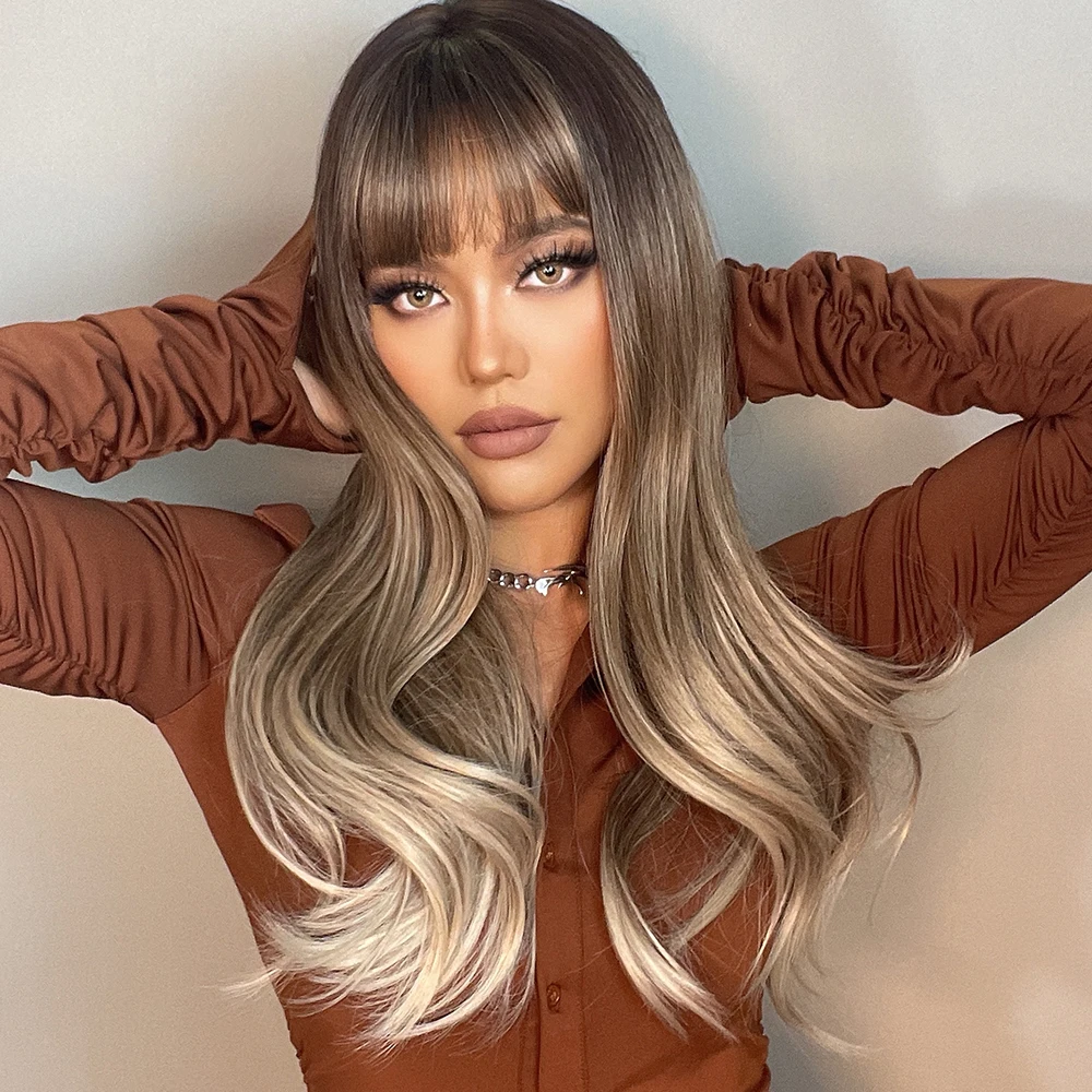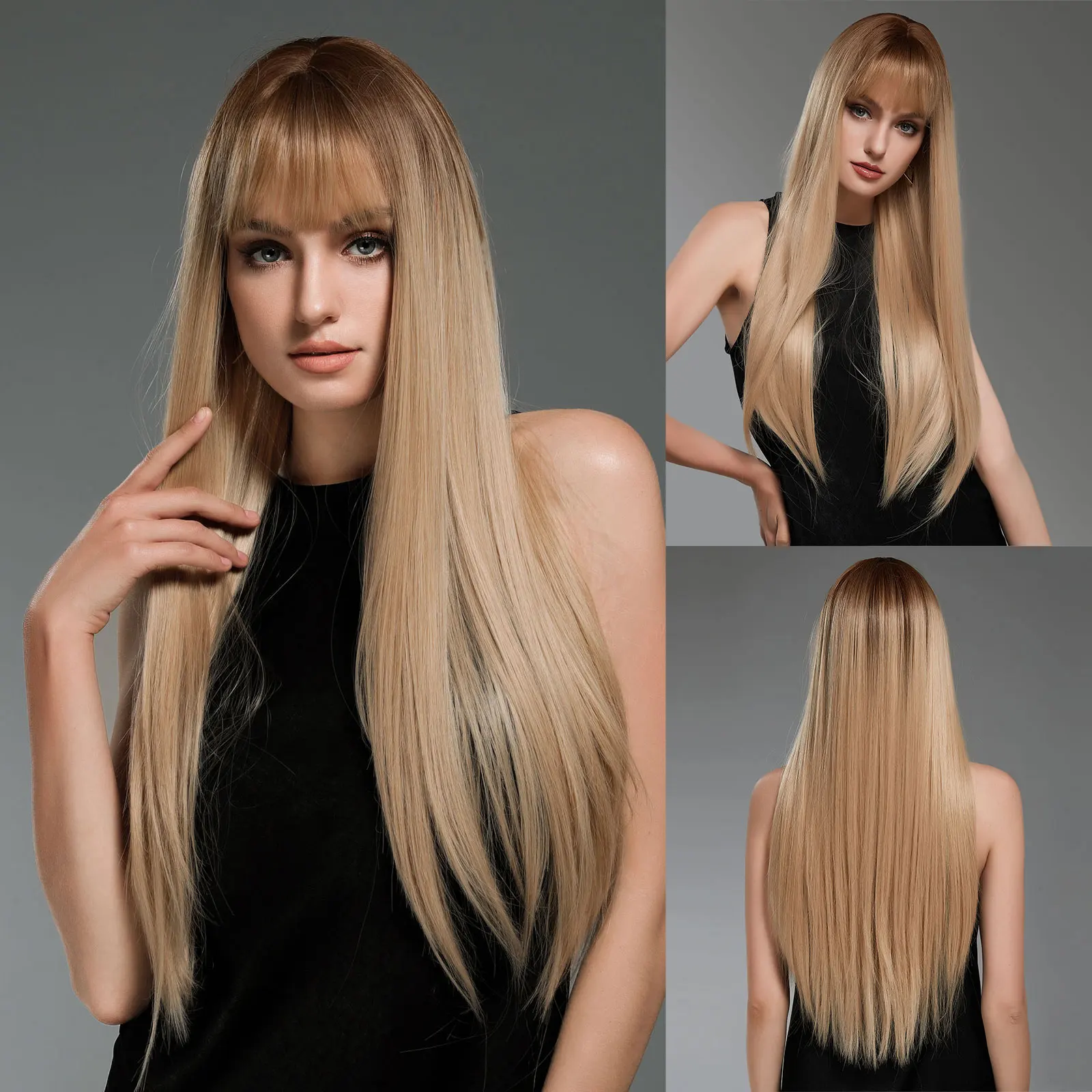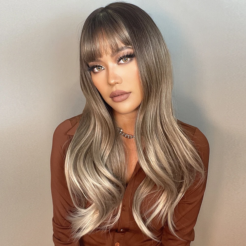 Длинные прямые синтетические парики с эффектом омбре henmargu, пепельно-коричневые светлые натуральные волосы для женщин, термостойкий парик для косплея