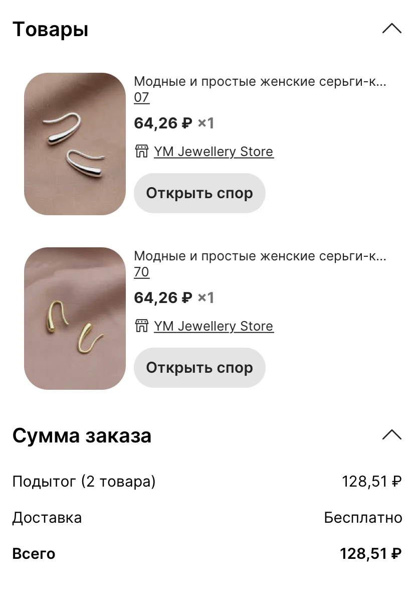 Подобные серьги уже брала на али, не помню, у этого ли продавца. Очень нравились, но потерялись. Заказала, вроде по фотографии такие же, но пришли серьги крупнее. В описании размер не указан. Вроде тоже симпатичные, но смотрятся не так изящно.