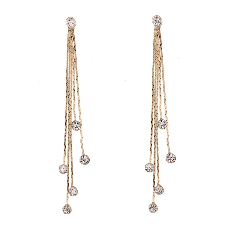 Женские Висячие серьги на длинной цепочке, блестящие стразы