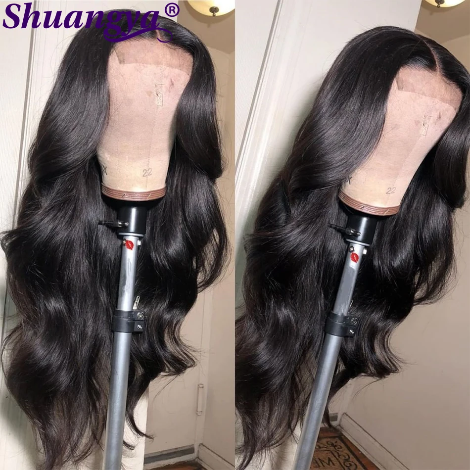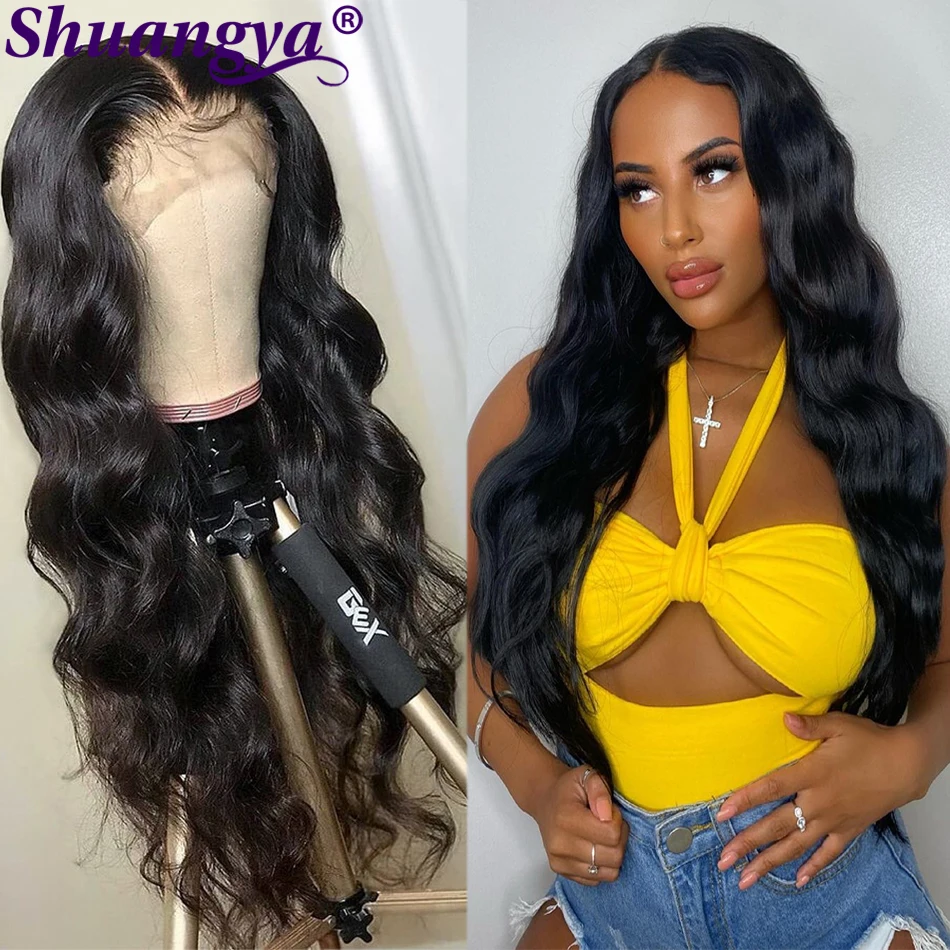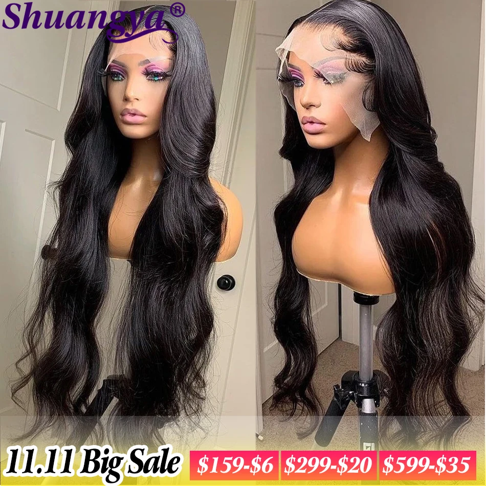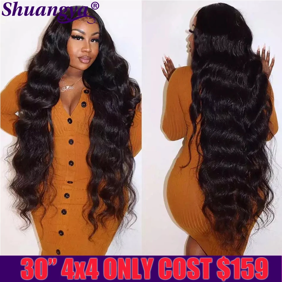 Парики из 100% натуральных волос на кружевной основе, волнистые, волнистые, бразильские, 30, 32 дюйма