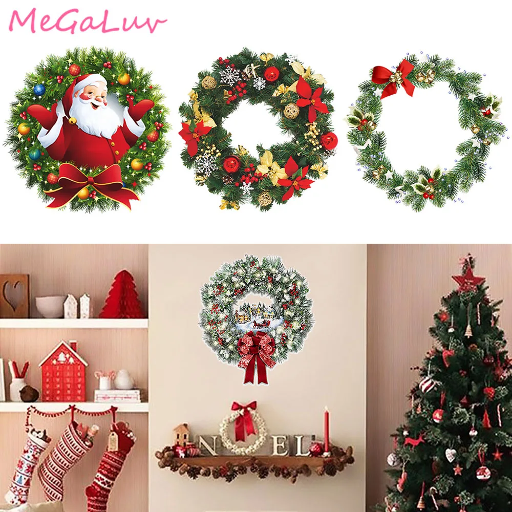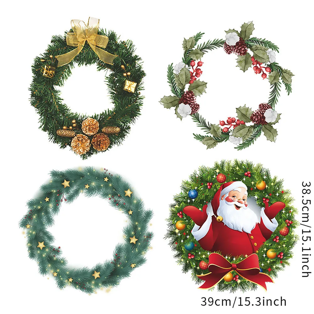 4 шт. Рождественский венок Санта-Клаус Наклейки на окна настенные дверные декорации Рождественское украшение для дома Рождество новый вечерние вечеринка