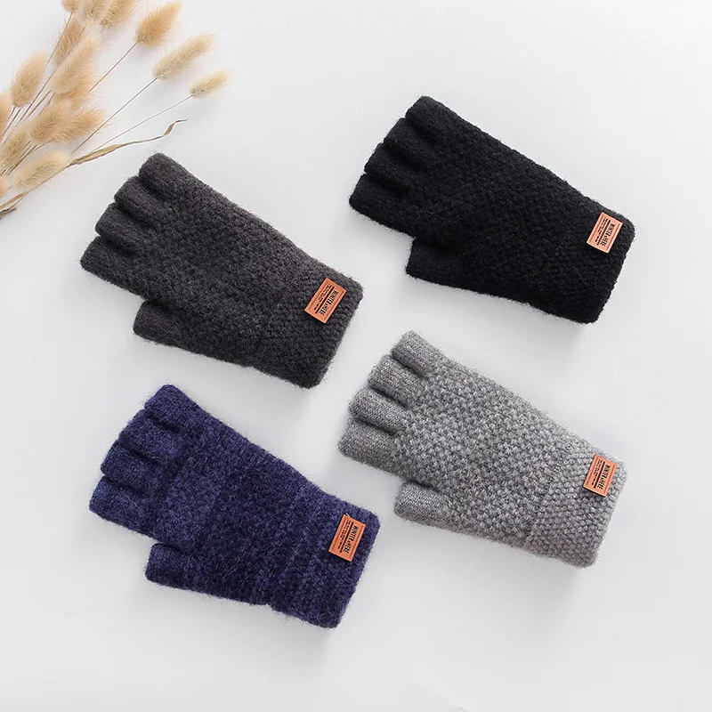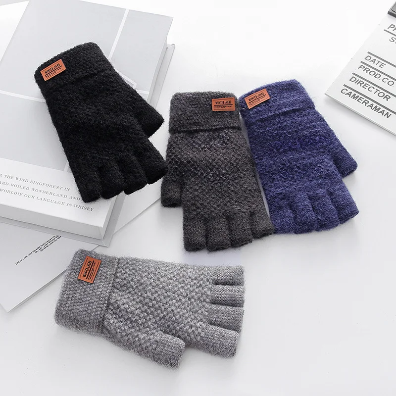Зимние перчатки без пальцев для мужчин, офисные вязаные шерстяные т...