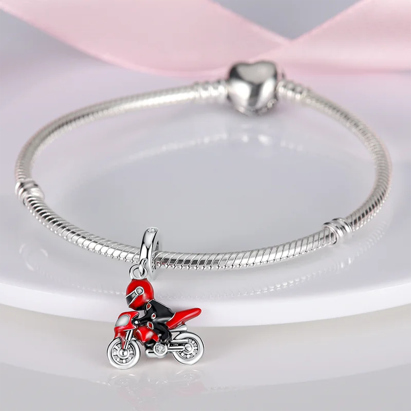 Подвески plata of ley 925 подходят для оригинального браслета Pandach мото гонщик образец серебряного цвета подвеска шармы бусины ювелирные изделия