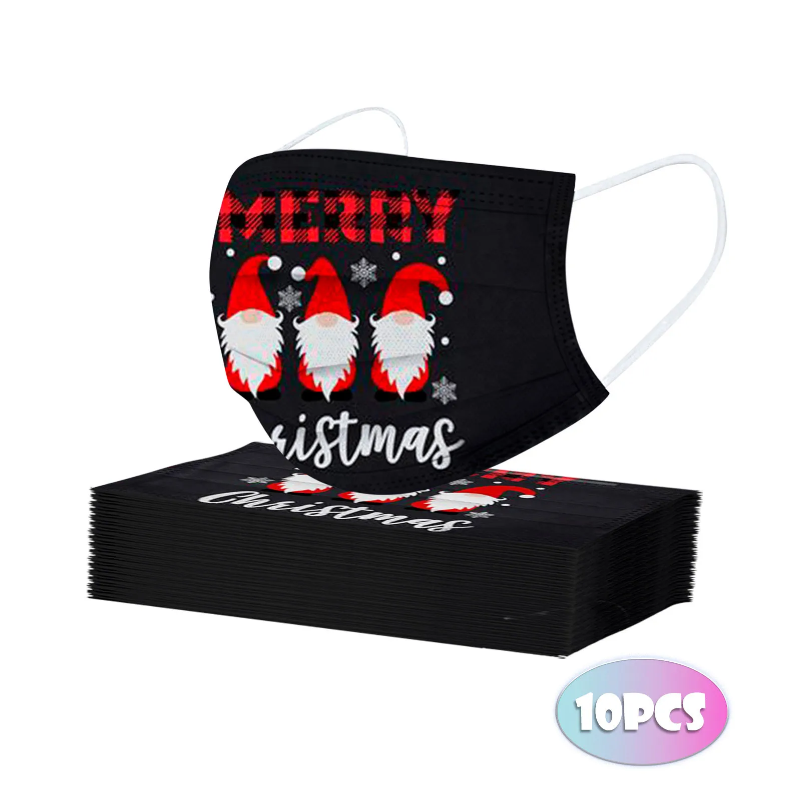 10 шт. одноразовая Рождественская Маска Для взрослых маски унисекс Маска Для Лица черная Маска 3-слойная Маска Для Лица