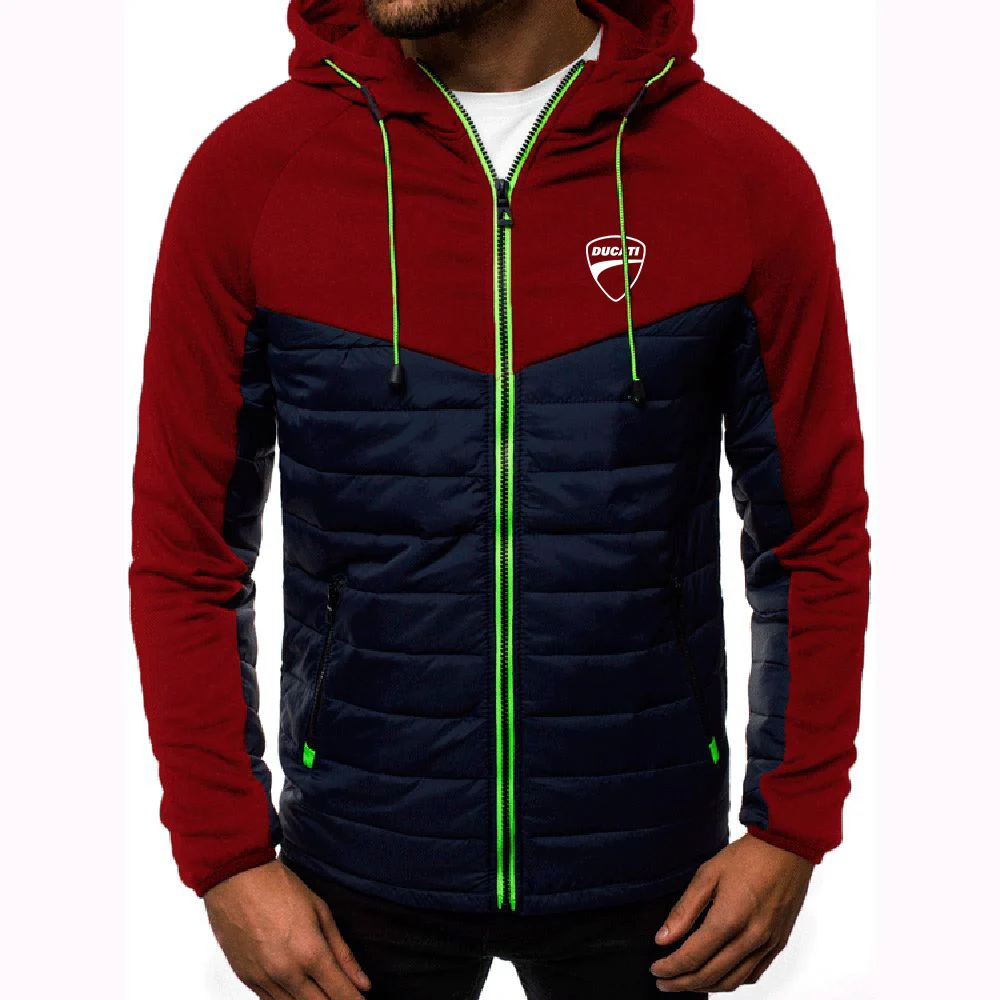 Новинка весна-осень 2021 модная мужская куртка с капюшоном Ducati на молнии с теплой флисовой подкладкой удобная модная искусственная кожа